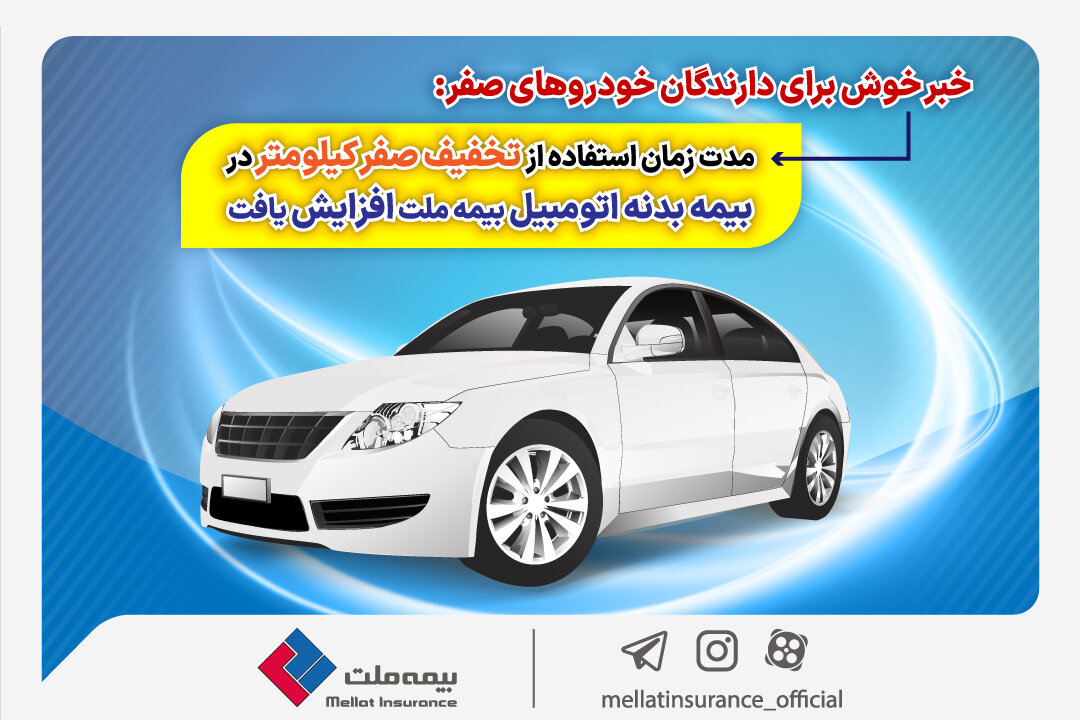 به گزارش روابط عمومی بیمه ملت، این تخفیف به منزله فرصتی عالی برای دارندگان خودروهای صفر است تا از مزایای ارزشمند آن بهرهمند شوند. این تخفیف برای خودروهای صفر داخلی و وارداتی قابل اعمال است که بر اساس آن خودروهای داخلی از تاریخ صدور فاکتور فروش بیش از شش ماه سپری نشده باشد و خودروهای وارداتی نیز از تاریخ ترخیص خودرو از گمرک بیش از شش ماه سپری نشده باشد. دارندگان خودروهای صفر که قصد استفاده از این تخفیف را دارند، میتوانند به نمایندگیهای بیمه ملت در سراسر کشور مراجعه و نسبت به صدور بیمه نامه بدنه اقدام کنند.