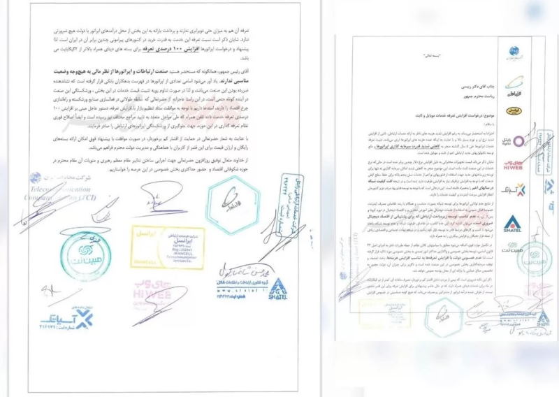 احتراماً به استحضار میرساند به رغم افزایش شدید هزینههای ناظر به ارائه خدمات ارتباطی، ناشی از افزایش شدید نرخ ارز و تورم بسیار بالا و با عنایت به اینکه عمده هزینههای اپراتورها ارزی میباشد، تثبیت تعرفه خدمات اپراتورها طی ۵ سال در گذشته منجر به کاهش شدید قدرت سرمایه گذاری اپراتورها و مانع توسعه تکنولوژیهای جدید ارتباطی اعم از ثابت و موبایل شده است