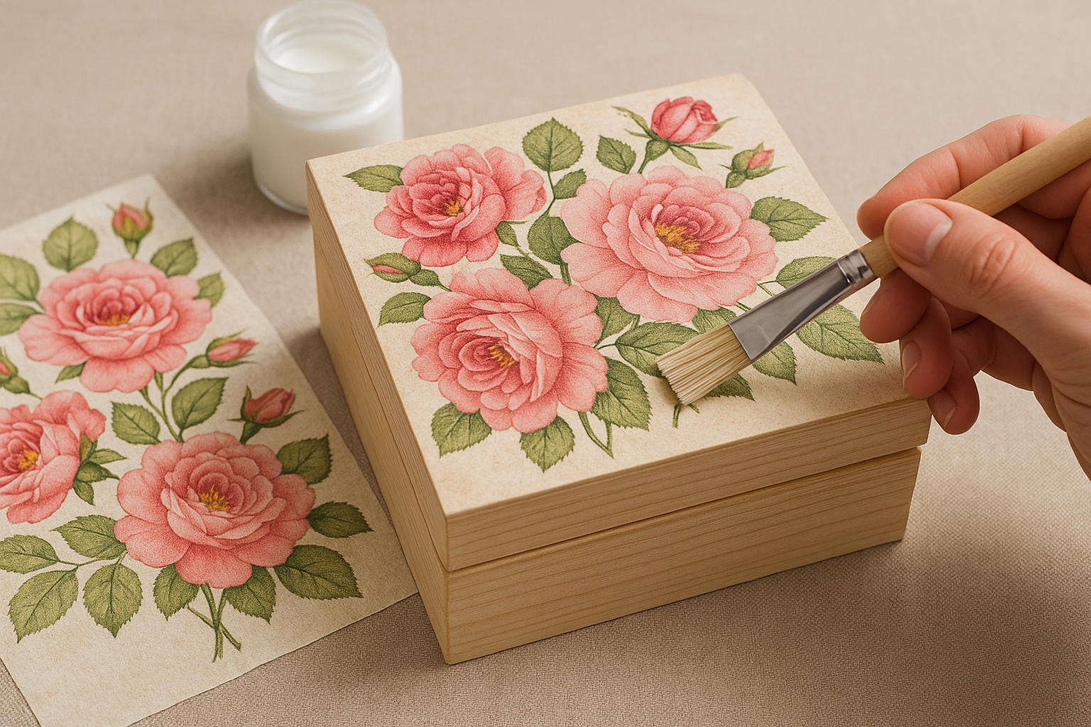 قبل از شروع، بهتر است بدانیم دکوپاژ چیست. دکوپاژ به معنای چسباندن طرحها و تصاویر مختلف روی سطوح گوناگون و پوشاندن آنها با لایهای از چسب یا لاک برای محافظت و زیبایی است. این هنر که بخشی از صنایع دستی محسوب میشود، با ابزارهای ساده و کمی ذوق و خلاقیت، میتواند یک جعبه چوبی ساده را به یک اثر هنری بینظیر تبدیل کند.