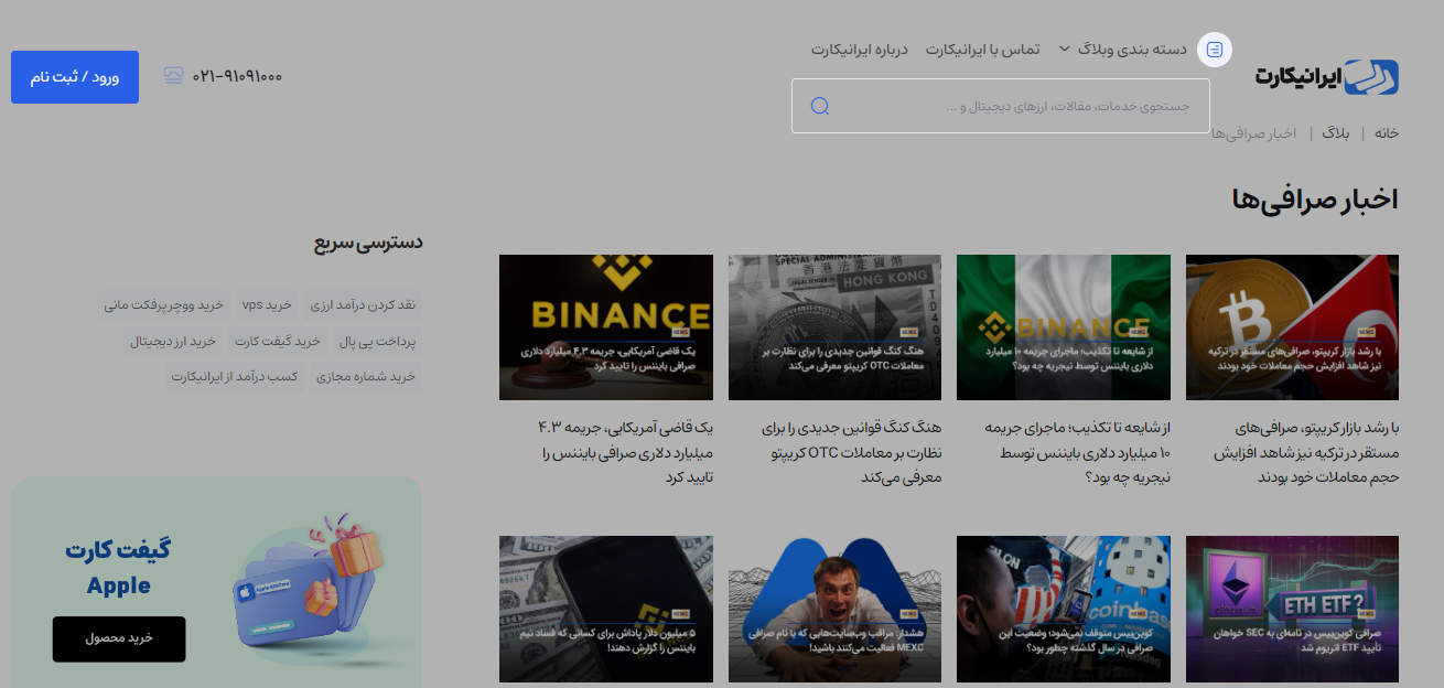 این صرافی، بخش خبری نیز دارد و اخبار به روز و مهم در مورد دنیای ارزهای دیجیتال، قانون‌گذاری‌ها در داخل و خارج ایران، استخراج و وضعیت بازار را به صورت دقیق منتشر می‌کند. اگر علاقمند به خواندن اخبار به زبان فارسی هستید، صرافی ایرانیکارت گزینه مناسبی برای شما است.