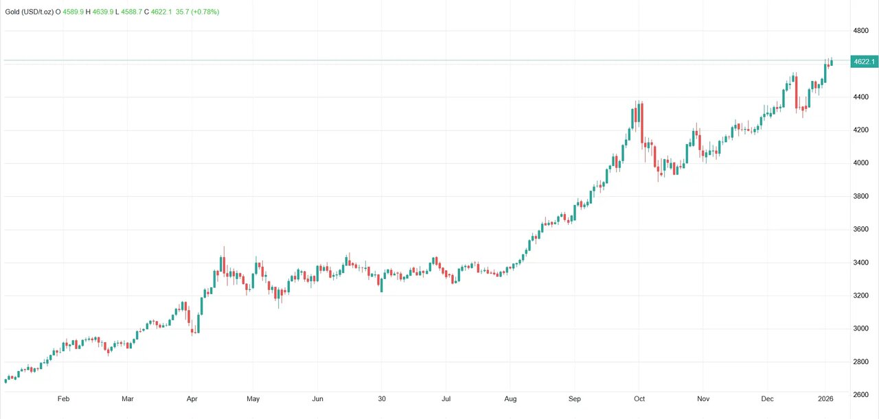 به گزارش خبرگزاری خبرآنلاین، بهای جهانی طلا در روز چهارشنبه ۲۴ دی ماه ۱۴۰۴ برابر با ۱۴ ژانویه ۲۰۲۶ اگرچه به مرز ۴,۶۴۰ دلار در هر اونس نزدیک شد و روند ثبت رکورد خود را ادامه داد، اکنون در حدود ۴۶۲۲ دلار در حال داد و ستد است و رشد قیمتی ۰.۷۸ درصدی را نسبت به معاملات روز گذشته نشان میدهد.