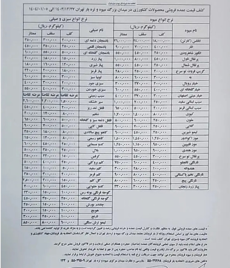 تابناک: قیمت عمده میوههای پرمصرف شب عید و تره...