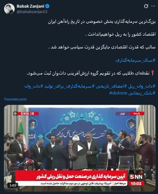 شرکت منتسب به «بابک زنجانی» با نام «داتوان» امروز...