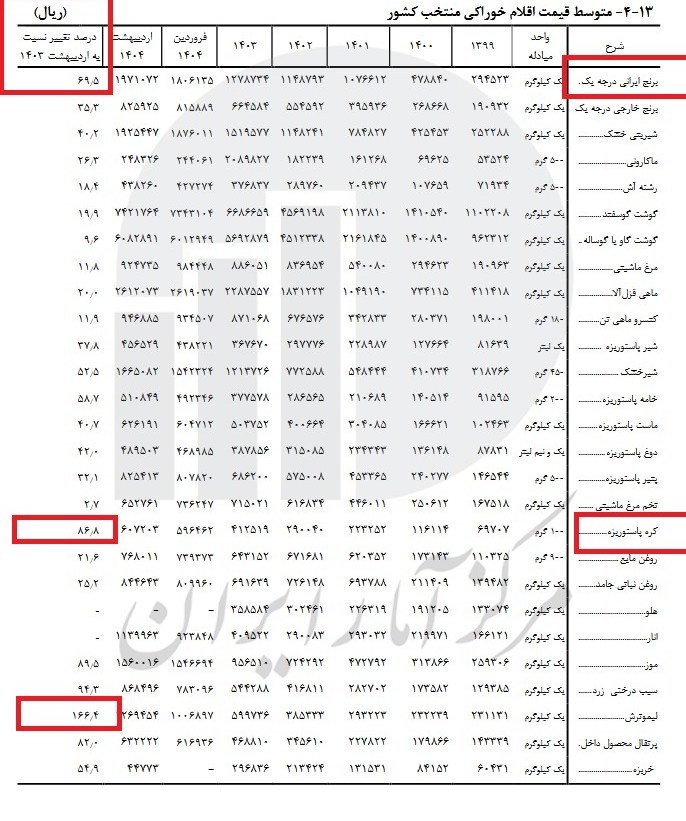 به گزارش تسنیم، مرکز آمار ایران متوسط قیمت اقلام...