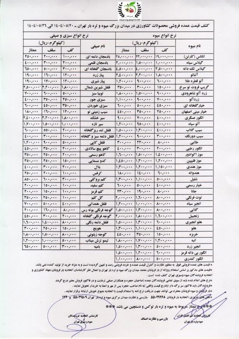 به گزارش خبرگزاری خبرآنلاین، قیمت عمده محصولات کشاورزی (میوه،...