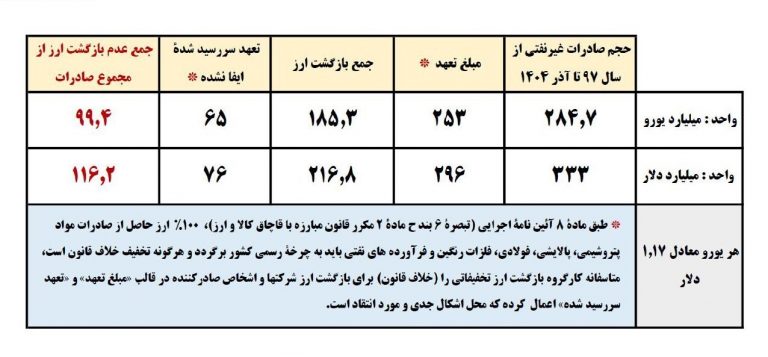 طبق این گزارش، از ابتدای سال 1404 تا تاریخ...