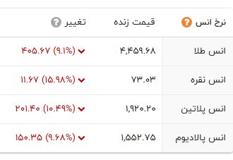 به گزارش خبرگزاری خبرآنلاین، بهای هر ائنس طلا تا...